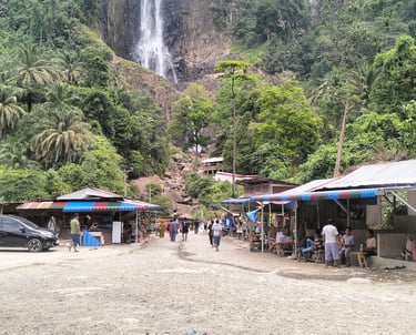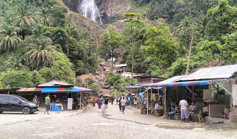 Nama “Tangga” dipercaya berasal dari bentuk geografis wilayahnya yang berundak-undak seperti tangga alami, mengikuti aliran sungai dan kontur perbukitan. Sejak dahulu, masyarakat berdampingan dengan hutan dan sungai memanfaatkan hasil alam untuk bercocok tanam, mencari ikan, serta menjaga hutan sebagai sumber kehidupan. Dalam perjalanan waktu, banyak aliran sungai kecil yang jatuh dari tebing dan lereng bukit, membentuk air terjun dengan ukuran dan karakter berbeda. Kini, Desa Tangga berkembang menjadi salah satu destinasi wisata berbasis masyarakat di Sumatera Utara. Pada musim libur nasional jumlah pengunjung mencapai 15.000 orang
